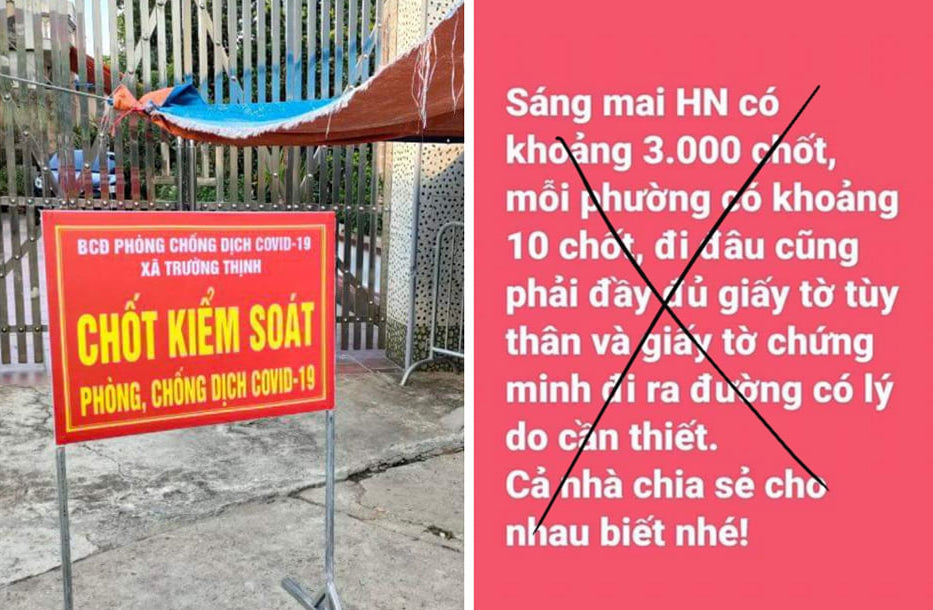 Ngày 26/7, trên mạng xã hội chia sẻ thông tin "sáng mai Hà Nội có khoảng 3.000 chốt, mỗi phường có khoảng 10 chốt, đi đâu cũng phải có đầy đủ giấy tờ tuỳ thân và chứng minh lý do ra đường có lý do cần thiết. Cả nhà chia sẻ cho nhau biết nhé".