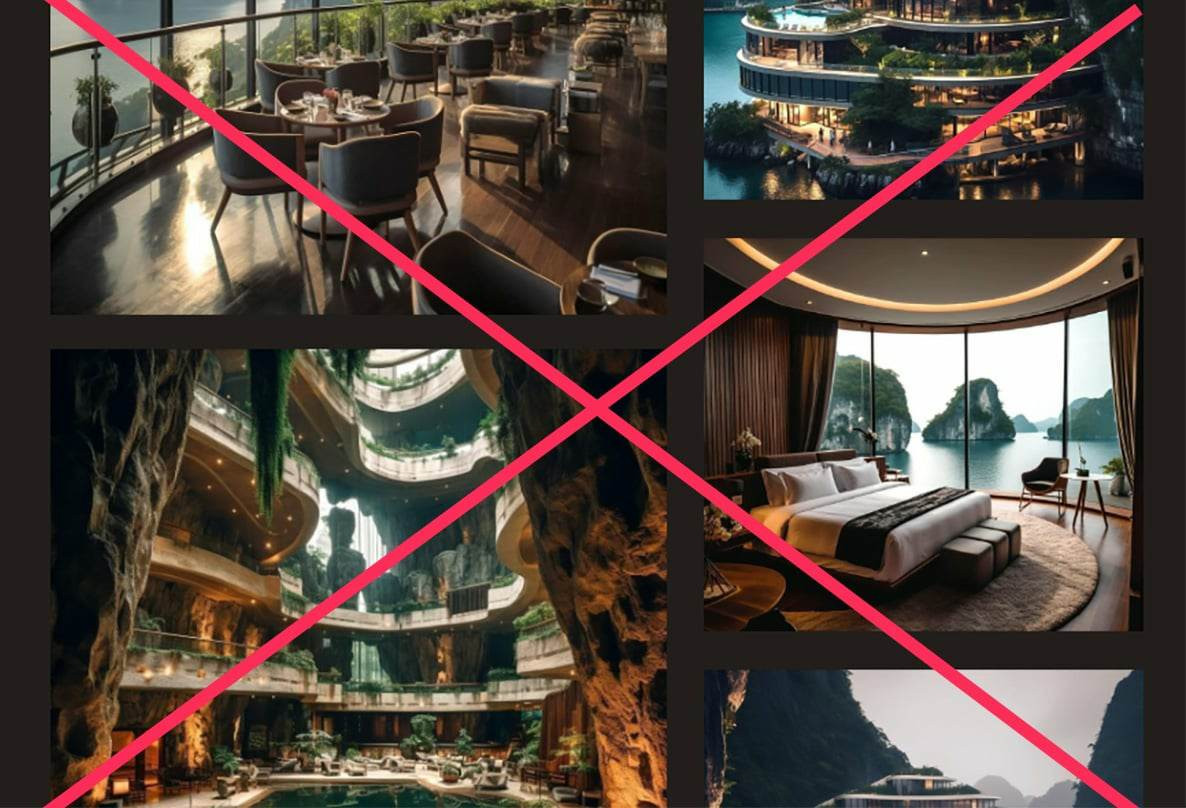 Hình ảnh và thông tin về khách sạn được xây dựng trên núi đá giữa Vịnh Hạ Long là bịa đặt.