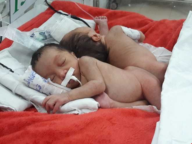 ![]() Hai bé sơ sinh dính liền phần mông đang được chăm sóc tại Bệnh viện Nhi đồng 2. Ảnh: Hà Phượng |