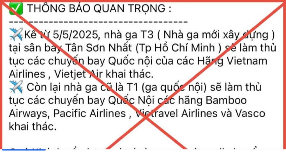 Mới đây, mạng xã hội lan truyền thông tin nhà ga T3 tại Cảng hàng không quốc tế Tân Sơn Nhất (TP.HCM) hoạt động từ ngày 5/5/2025.