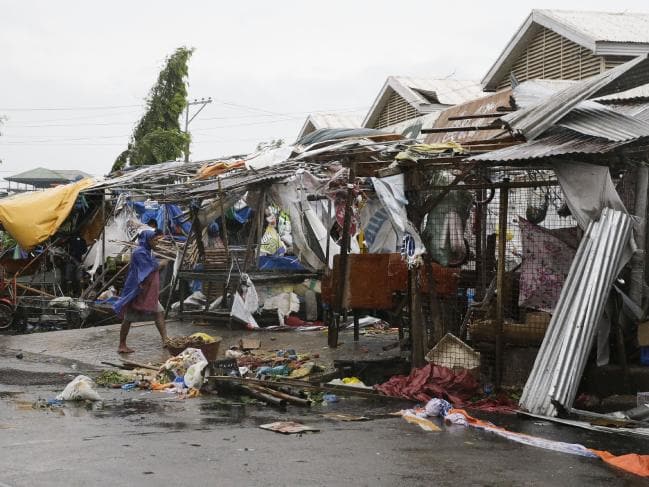 Các quầy hàng bị phá hủy sau khi siêu bão đổ bộ vào tỉnh Cagayan. (Ảnh: AP)