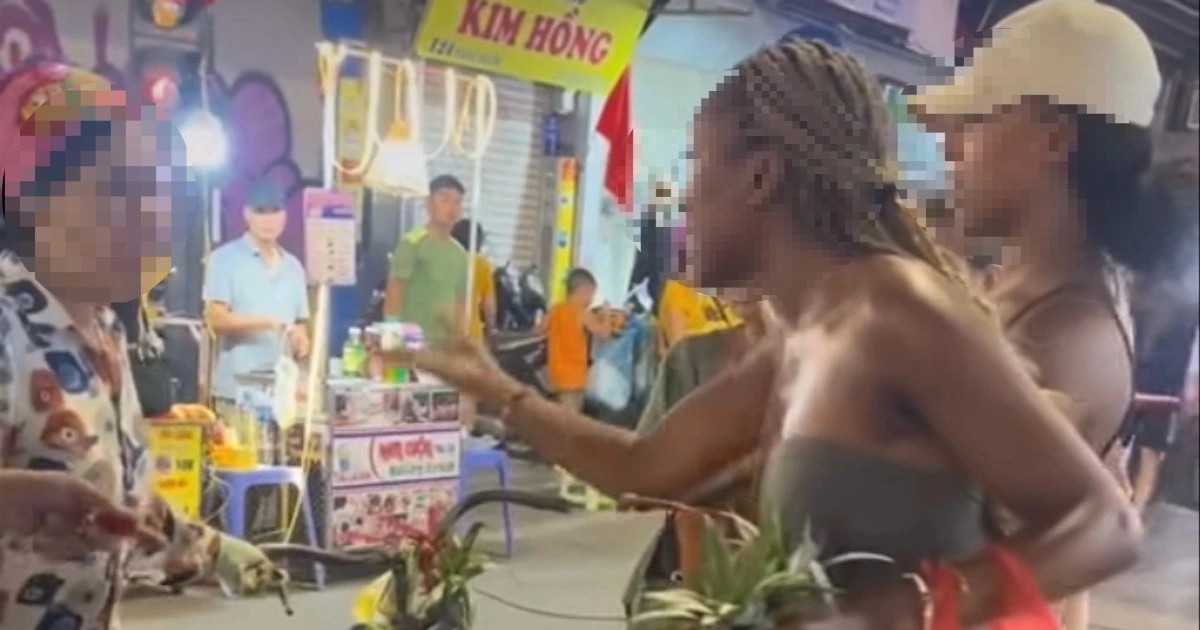 Tuy nhiên, hai vị khách nước ngoài sau khi cầm tiền thừa đã đòi tự lấy thêm 2 quả chưa gọt nhưng bà T. không đồng ý, dẫn đến to tiếng. Một trong hai nữ du khách người da màu hất đồ đạc của bà T. trên xe xuống đất. Nhiều người dân nghe thấy tiếng cãi vã cũng tập trung lại xem và ra can ngăn, khuyên bà T. trả lại tiền cho khách nên người bán hàng rong này có nói lại là chỉ bán 50.000 đồng/túi dứa.