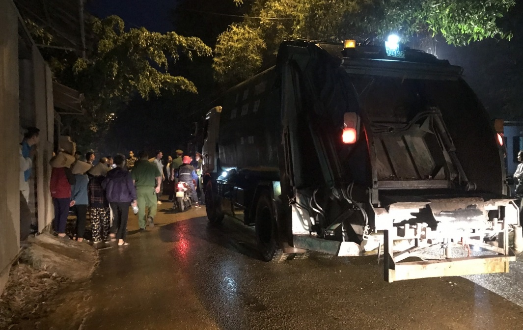 Một số người dân xã Hồng Kỳ phản đối xe chở rác vào khu xử lý.