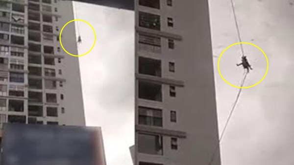 Cảnh tượng ly kỳ này được người dân ở các tòa nhà khác quay lại và tung lên mạng. Cư dân mạng xem xong không khỏi cảm thán: "Quá nguy hiểm".
