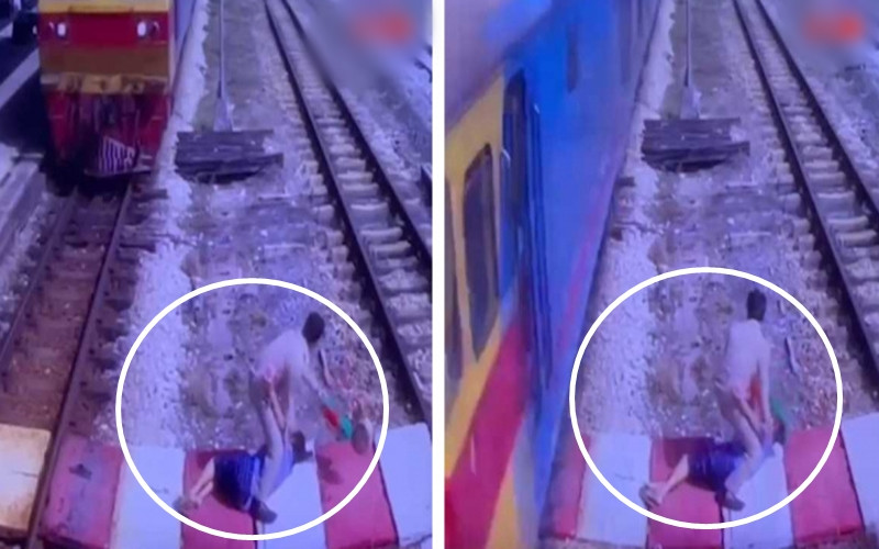 Vì quá sợ hãi, bà ngồi luôn xuống giữa hai đường ray, chân tay mềm nhũn, run rẩy, không sao di chuyển được. Vào thời điểm đó, một nhân viên nhà ga đang đứng trên sân ga định hướng cho đoàn tàu vào, thấy tình huống ngàn cân treo sợi tóc, anh lập tức lao vào, ôm lấy bà cụ rồi ngã sang một bên để tránh đoàn tàu. Toàn bộ pha cứu nguy chỉ diễn ra trong vòng 4 giây, may mắn thay cả 2 đều an toàn. Sau khi bình tĩnh lại, nam nhân viên giúp cụ bà đứng dậy, từ từ sang đường.