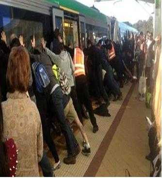 Rất nhiều người đã hợp sức để nhấc các toa tàu về một bên, tạo đủ khoảng trống cho việc kéo chân nạn nhân lên.