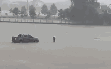 Thót tim cảnh dẫn đường cho ô tô 'bơi' qua dòng lũ