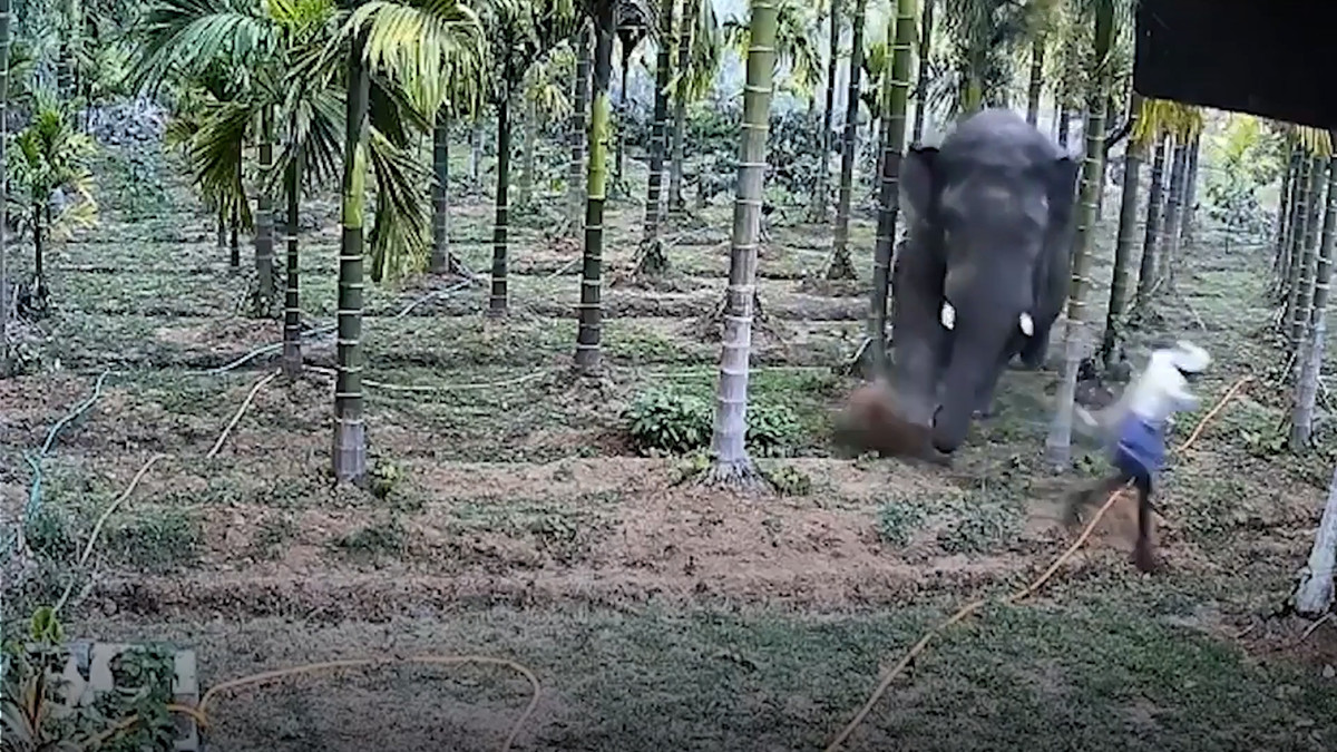 Thót tim cảnh người đàn ông bị voi hoang dã truy đuổi, thoát chết trong tích tắc