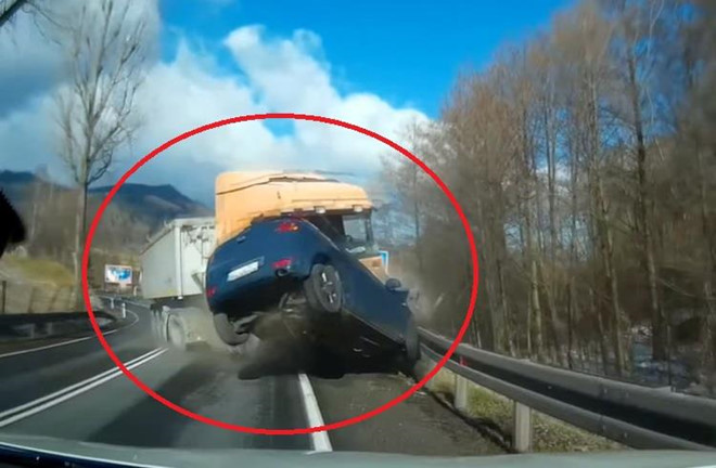 Thót tim cảnh xe tải mất lái đâm bay ô tô con đi ngược chiều