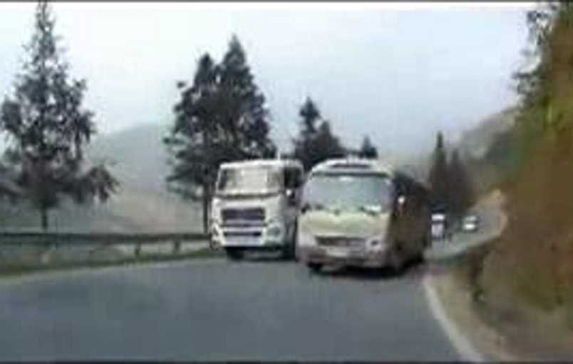 Đoạn clip ghi lại cảnh xe khách ngang nhiên lấn làn, vượt xe bồn ngay tại khúc cua khuất tầm nhìn trên đường đèo ở Sapa, Lào Cai khiến người xem thót tim.