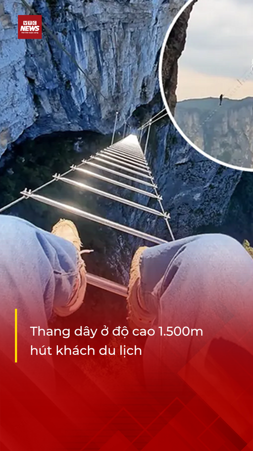Thót tim hành trình leo thang dây lơ lửng ở độ cao 1.500m tại Trung Quốc