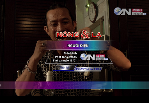 Phóng sự "Người điện" sẽ được phát sóng lúc 19h45 thứ 3 ngày 13/1/2015 và phát lại lúc 23h5 cùng ngày trên kênh ANTG, Truyền hình An Viên. Mời quý khán giả đón xem.