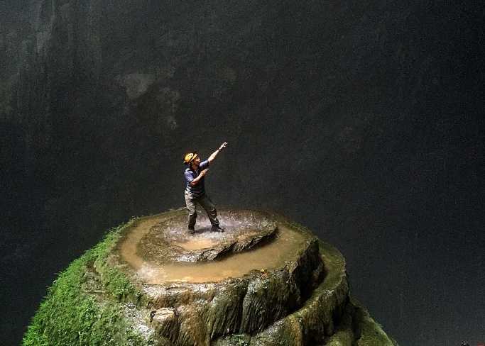 | Các nhà thám hiểm ngất ngây với vẻ đẹp của hang Sơn Đoòng (Ảnh: Việt Anh) |