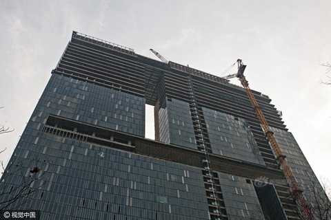 Hiện nay, tòa nhà đã gần xây dựng xong. Các công nhân đang ốp kính các mặt và hoàn thiện nội thất bên trong.