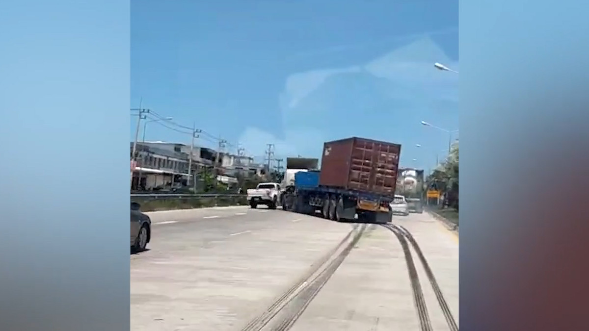 Tài xế mất kiểm soát khiến xe container “đánh võng” và tông vào ô tô bên cạnh tại tỉnh Chonburi, Thái Lan.