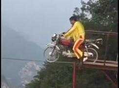 Thót tim xem cảnh đi xe máy trên dây qua vực sâu