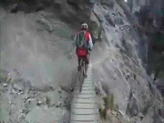 (VTC News) - Đạp xe trên con đường mòn hẹp với một bên là vực sâu thì có lẽ người cầm lái phải có tinh thần thép.