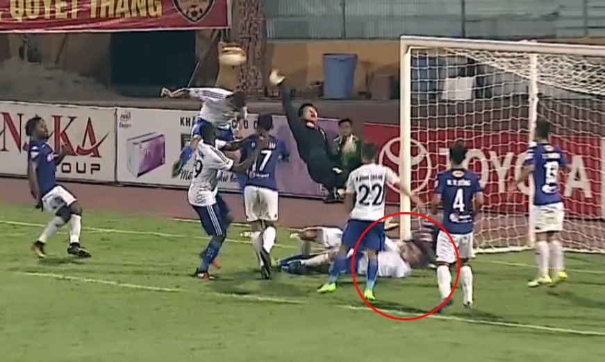 Hà Minh Tuấn nuốt phải lưỡi, bất tỉnh. Rất may, anh được các cầu thủ Hà Nội FC và bác sỹ cấp cứu kịp thời.