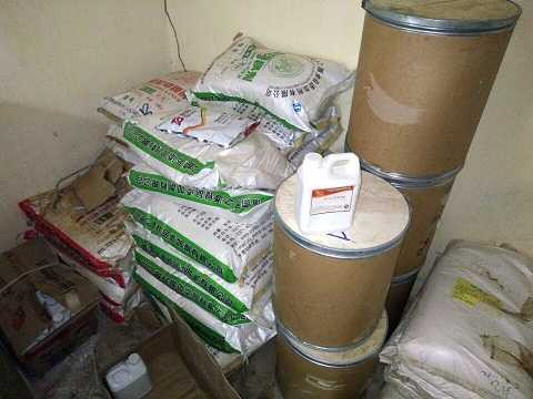 Tại thời điểm kiểm tra, tổ công tác phát hiện hơn 2,5 tấn phụ gia thực phẩm do nước ngoài sản xuất, có chữ Trung Quốc trên bao bì.
