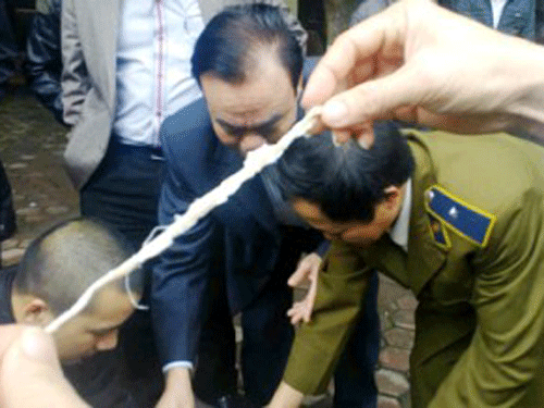 Theo chủ ki ốt thì số hàng trên được nhập về từ TP Vinh (Nghệ An).Cán bộ Đội QLTT số 1 dùng lửa đốt thử những sợi mực bốc cháy và có mùi khét như mùi nhựa cháy.