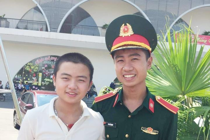 Võ Trọng Khải chụp ảnh cùng anh trai của mình.