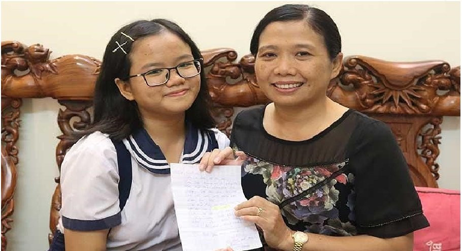 Ôm con vào lòng với ánh mắt lấp lánh, yêu thương, chị Nguyễn Thị Hiếu, mẹ Phương Linh, bày tỏ: “Trong những dấu mốc quan trọng của con, tôi thường chọn cách viết thư để thể hiện tình cảm của mình. Tôi hy vọng bức thư sẽ giúp con cảm nhận được tấm lòng của người mẹ và cố gắng hơn. Tôi cũng nói với con: “Trong mỗi kỳ thi, dù đề như thế nào, con hãy làm hết sức mình””.
