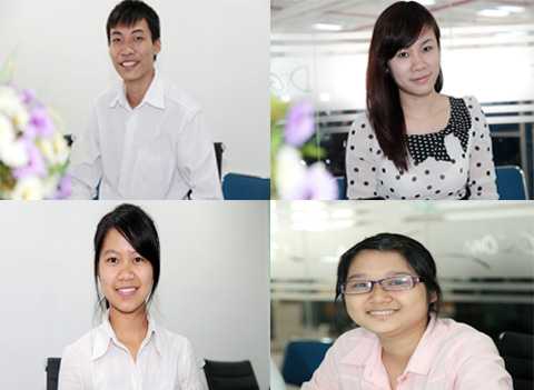 | 4 thủ khoa xuất sắc giao lưu tại tòa soạn VTC News. Theo thứ tự từ trái sang phải: Trần Xuân Bách, Đỗ Thị Loan, Trần Thị Hạnh, Nguyễn Thị Thùy Dung |