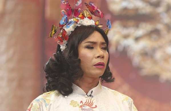Công Lý với trang phục hình phượng và mũ đội đầu toàn bướm