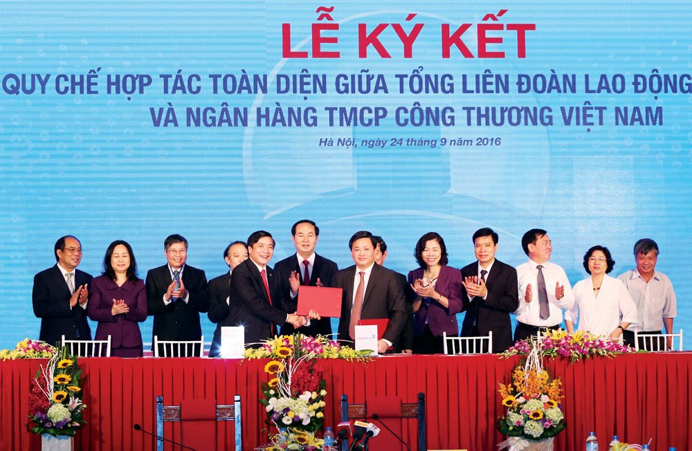 Tháng 9/2016, VietinBank ký kết Quy chế phối hợp với Tổng Liên đoàn Lao động Việt Nam (LĐLĐ), thiết lập quan hệ và thỏa thuận hợp tác toàn diện, hướng tới mục tiêu mang lại lợi ích hợp pháp, chính đáng cho đoàn viên công đoàn (ĐVCĐ). VietinBank đã triển khai các hoạt động như: Phát hành quản lý, khai thác sử dụng Thẻ đoàn viên liên kết; thực hiện thu, chuyển trả KPCĐ; cung cấp tài chính cho việc thực hiện đề án đầu tư thiết chế công đoàn. Cùng với đó, VietinBank cung cấp gói sản phẩm, DV ưu đãi dành cho ĐVCĐ và triển khai các hoạt động xã hội và hoạt động khác.