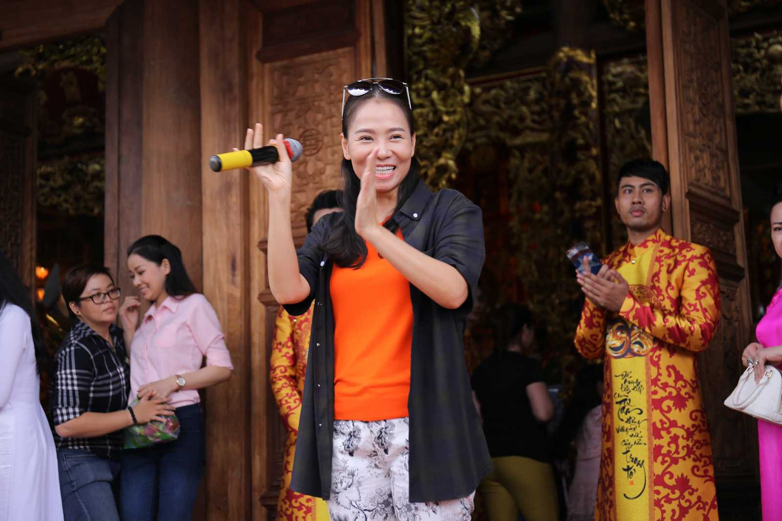 Thu Minh cùng Dương Khắc Linh - Trang Pháp đến đền thờ Tổ nghiệp do NSƯT Hoài Linh xây dựng tại Quận 9