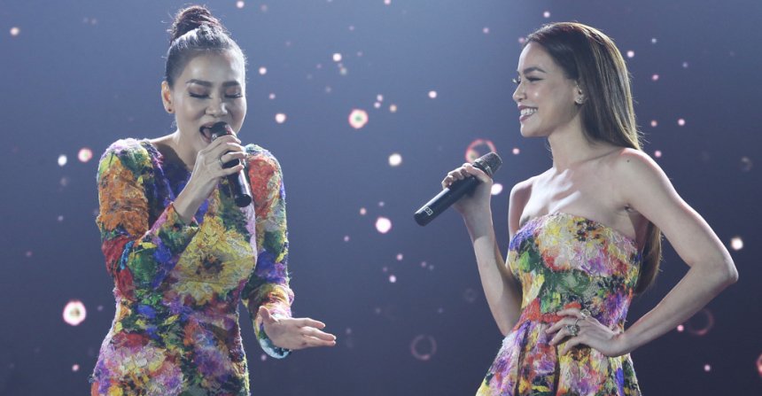Xuất hiện trên sân khấu lễ trao giải, Thu Minh và Hồ Ngọc Hà diện trang phục với họa tiết hoa giống nhau và khoe chất giọng nội lực. Cả 2 khiến khán giả có mặt trong sự kiện phải “nổi da gà” với những câu phiêu và những nốt cao “khó nhằn”.
