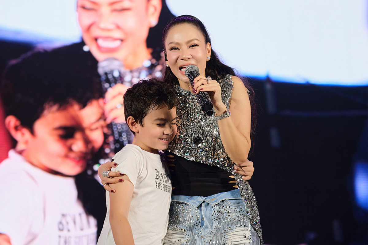 Tương tác của hai mẹ con khiến khán giả không khỏi thích thú. Đáng chú ý, đây là lần đầu tiên Thu Minh công khai con trai trước công chúng. Từ khi làm mẹ, cô luôn chọn những góc chụp không lộ rõ mặt hay dùng hình để che mặt con mõi khi đăng ảnh.