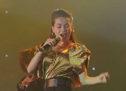 | Với phong cách sexy, Thu Minh khoe giọng hát quyến rũ của mình cùng với bộ đầm gợi cảm, lấp ló khoe vòng 1 khủng. |