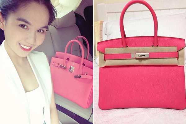 Người mẫu Ngọc Bích: Không thường xuyên khoe thành tích mua sắm nhưng Ngọc Bích cũng được đánh giá là một trong những người đẹp sành hàng hiệu nhất nhì làng giải trí. Cô từng đăng tải hình ảnh về chiếc túi Dior có một không hai trên thế giới mà mình vừa tậu tại Monaca. Theo người đẹp: "Chỉ có khách VIP mới có thể đặt hàng và sở hữu kiểu túi này. Túi Hermes 1,5 tỷ đồng của Ngọc Trinh có khoảng vài chiếc trên thế giới nhưng túi của tôi chỉ có duy nhất một mẫu". Tuy không tiết lộ về giá cả nhưng với những thông tin mà người đẹp vừa đề cập, nhiều tín đồ thời trang đồn đoán, túi mới của Ngọc Bích đắt đỏ không thua kém túi Hermes tiền tỷ mà Ngọc Trinh từng gây xôn xao showbiz.
