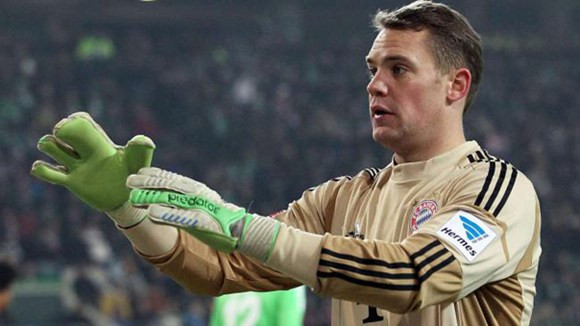 Trong trận Bayern thắng Wolfsburg 2-0 ở vòng 22 Bundesliga, Manuel Neuer đã bắt đầu sử dụng một đôi găng tay chỉ có 4 ngón trên bàn tay phải. Theo đó, ngón giữa và trỏ được gộp chunglại với nhau. Sở dĩ thủ môn người Đức phải làm như vậy do chấn thương tay của anh chưa hoàn toàn bình phục.