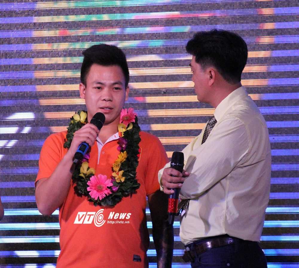 Vì cứ vừa nói 1 phút, Văn Huy lại mất 3 phút ngừng vì... xấu hổ và "em chẳng biết nói gì". Ấp a ấp úng mãi thì thủ môn từng nhiều lần giành danh hiệu "Thủ môn xuất sắc nhất giải vô địch futsal Quốc gia" này mới rành mạch được rằng: "Vào thi đấu tôi không sợ đội nào cả. Tôi chỉ đang sợ, đang run khi đứng trên sân khấu và trước nhiều người như thế này".