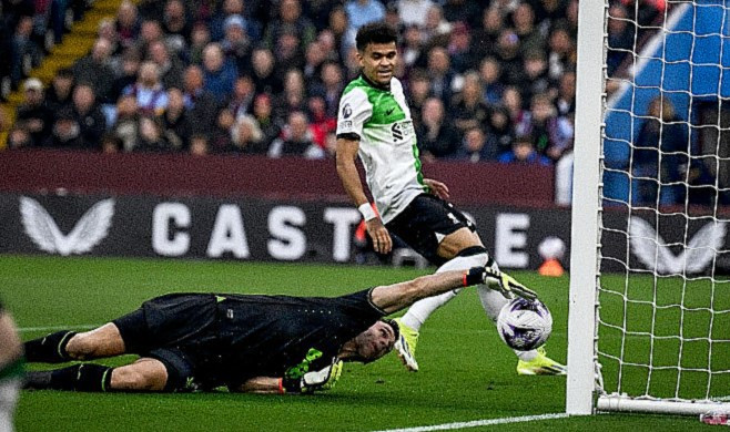 Harvey Elliott của Liverpool đột phá bên cánh phải, trước khi căng ngang vào trong. Bóng đập chân trung vệ Pau Torres khiến Emiliano Martinez lúng túng. Dù đã bắt được bóng, thủ môn người Argentina vẫn để bóng lọt qua hai tay, đi vào lưới.