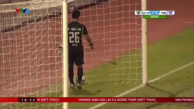 Than Quảng Ninh đang dẫn 2-1, lại đang chơi hơn 2 người khi đồng hồ chỉ sang phút 90+4. Có lẽ chính vì thế mà thủ thành Tuấn Linh làm "trò hề" trong vòng cấm, nhảy nhót đùa cợt với tiền đạo FLC Thanh Hóa. Ngờ đâu, Tuấn Linh bắt bóng không dính, để Sunday cướp được, dễ dàng ghi bàn gỡ hòa 2-2 cho FLC Thanh Hóa.