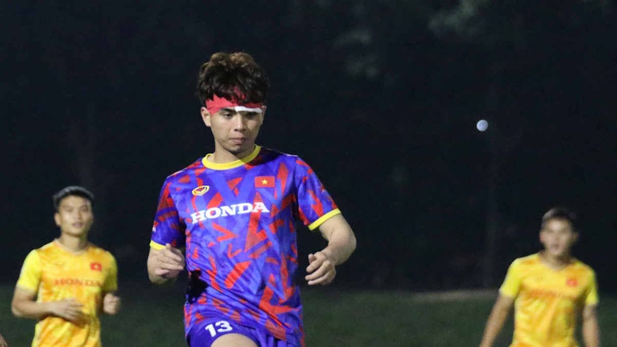 Trong buổi tập tối qua (27/3) của U23 Việt Nam, Đoàn Huy Hoàng có thể tham gia cùng các đồng đội. Thủ môn này quấn băng quanh trán và vẫn đeo gạc che vết khâu ở vùng mắt.