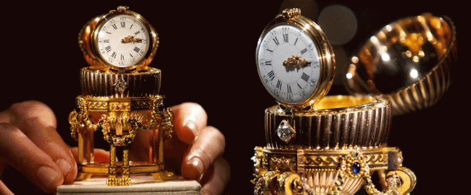 Bên trong quả trứng chứa đồng hồ Vacheron Constantin, được đặt trên một đế bằng vàng và là món quà Vua Alexander III tặng cho vợ là hoàng hậu Maria Feodorovna nhân dịp lễ Phục sinh năm 1887. Quả trứng này giá trị lên đến 33 triệu USD (khoảng 804 tỷ đồng).