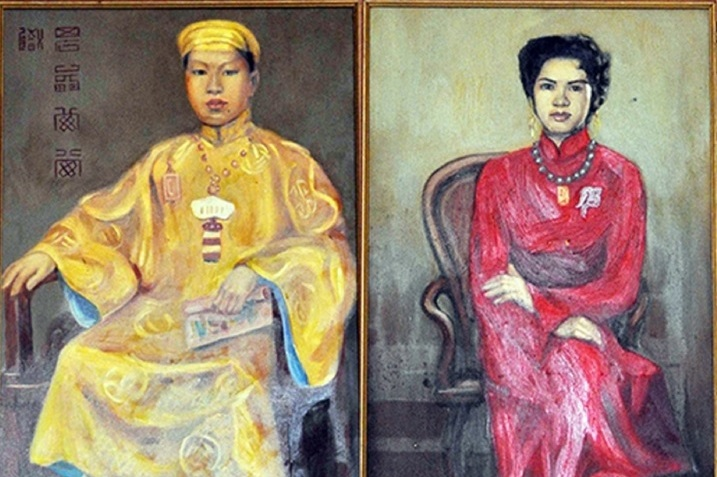 Chân dung vua Bảo Đại và "thứ phi" Phi Ánh khi còn trẻ được treo tại phòng khách biệt thự tại Đà Lạt.