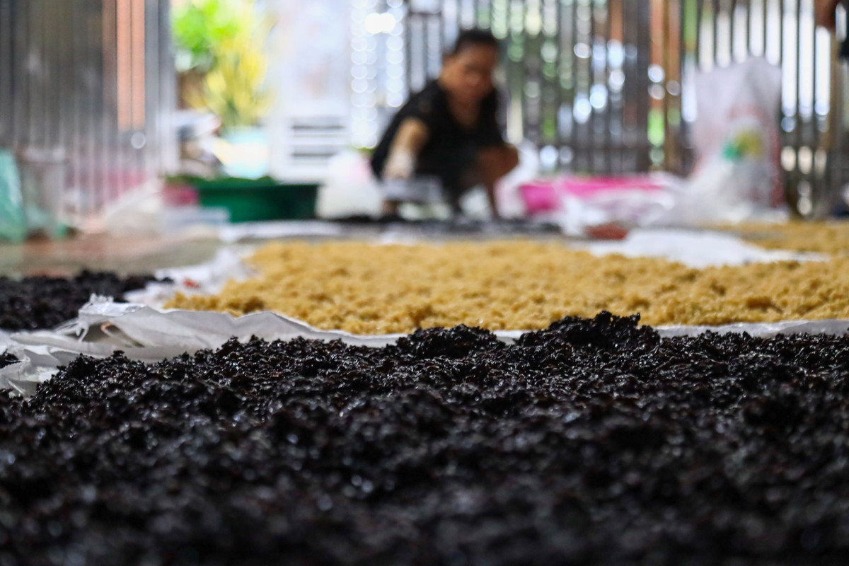 Gạo sau khi đồ sẽ được rải mỏng ra từng mâm, để nguội rồi rây men.