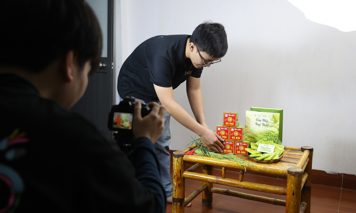 Các sản phẩm cốm được quảng bá trên nhiều kênh thông tin.