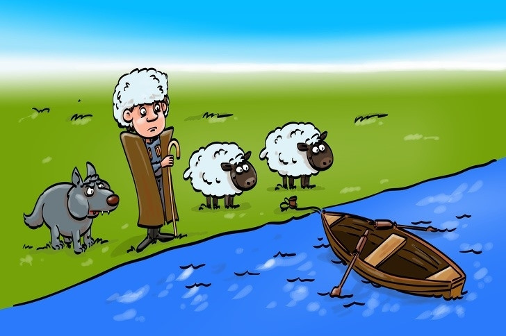 Một thanh niên đi cùng một con sói và hai con cừu đến bờ sông. Tất cả đều cần qua sông, nhưng chiếc thuyền trên dòng sông nhỏ này chỉ có thể chở 2 hành khách (nếu vượt quá thuyền sẽ chìm). Trong khi đó, nam thanh niên không thể để con sói cùng với con cừu vì con sói thích ăn cừu.