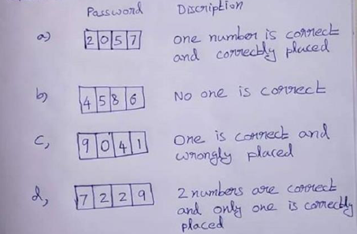 2 - 0 - 5 - 7: Một số đúng và nằm đúng vị trí trong mật khẩu thật.