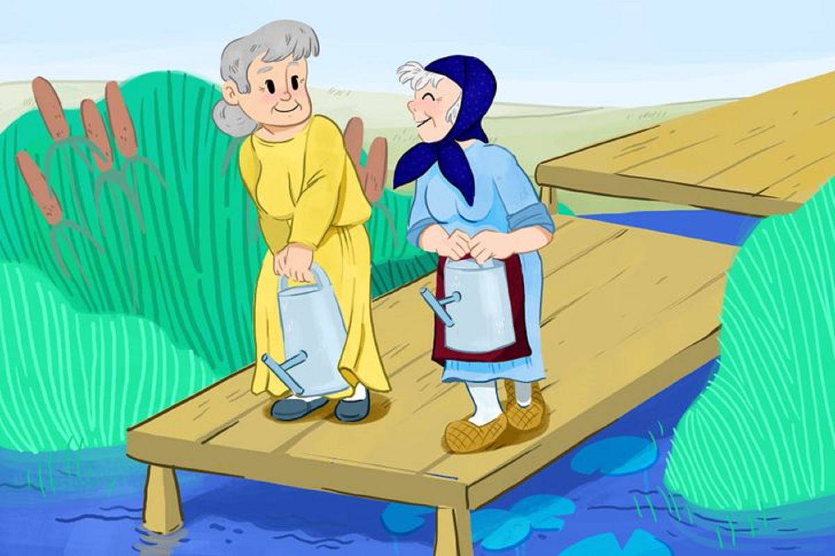 1. Có hai cụ già ra sông lấy nước tưới vườn. Hỏi bình nào của hai cụ già sẽ mang được nhiều nước hơn?