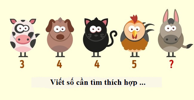 Mỗi con vật ứng với một số, theo bạn con số cần tìm là bao nhiêu?
