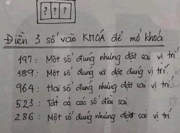 Mới đây, tài khoản Facebook Trần Quỳnh đăng tải câu đố tìm mật mã để mở ổ khóa thông qua 5 mệnh đề dữ liệu, cụ thể: