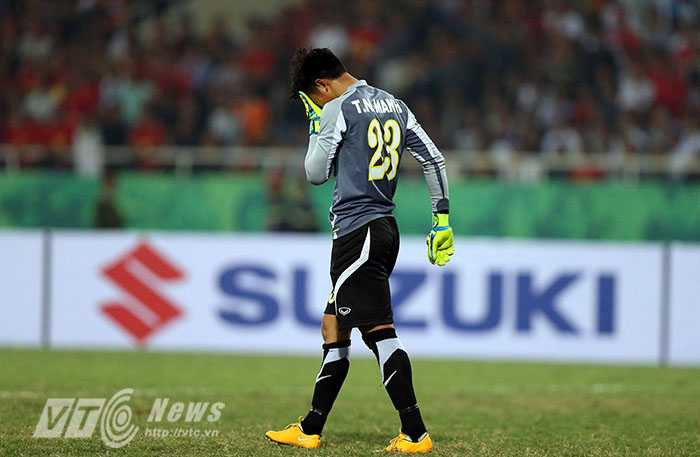 | Nguyên Mạnh khóc nức nở sau sai lầm dẫn đến bàn thua (Ảnh: Quang Minh) |