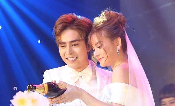 Nụ cười hạnh phúc thường trực trên môi đôi vợ chồng mới của showbiz Việt.